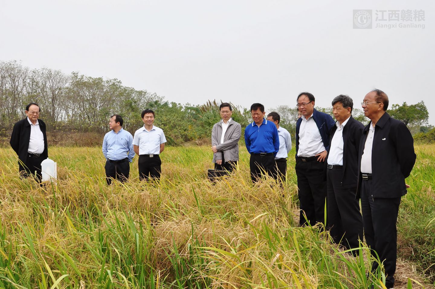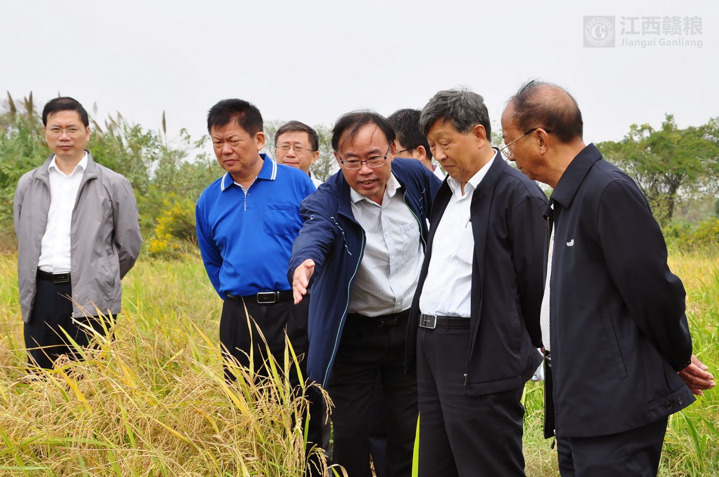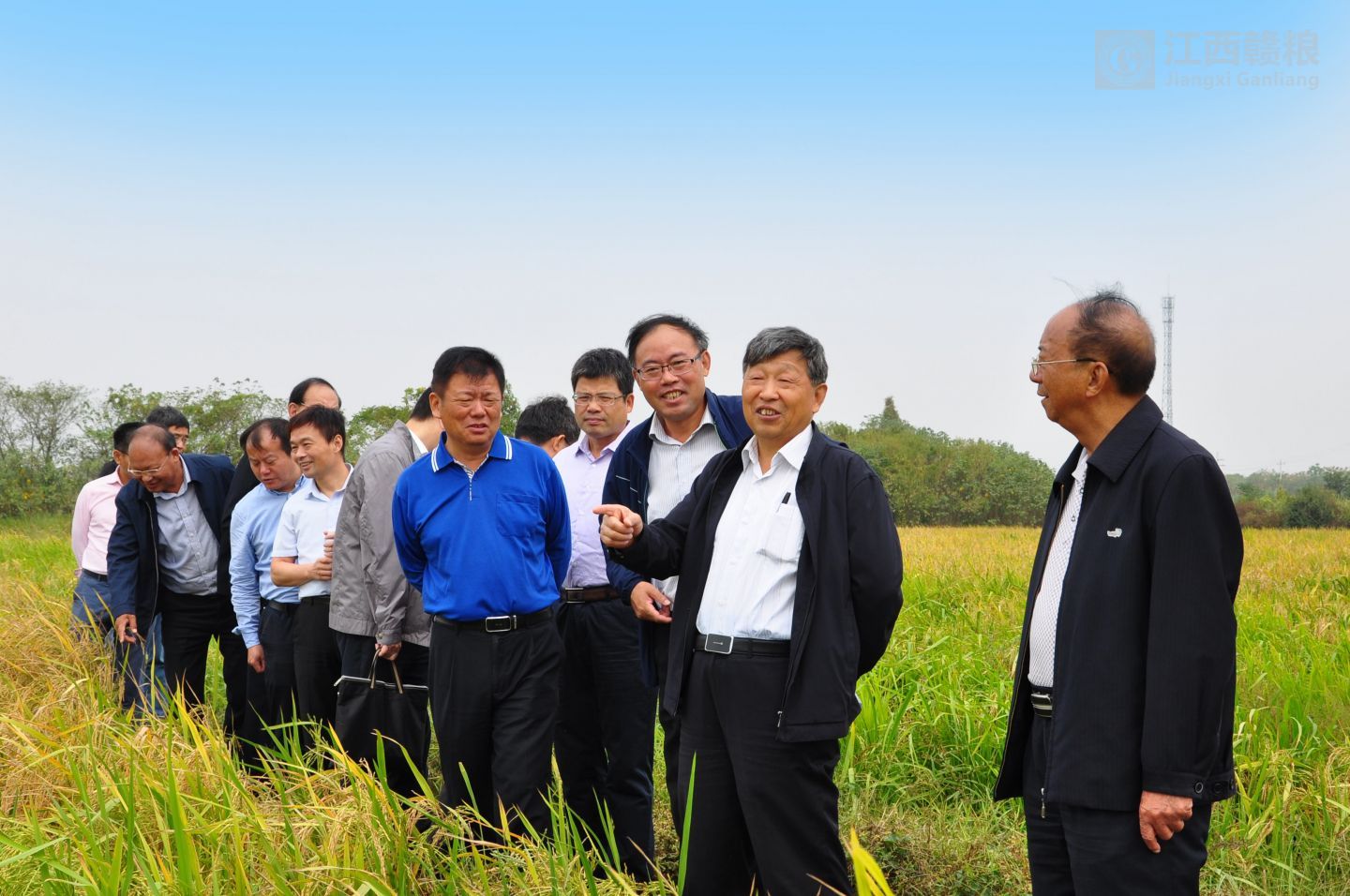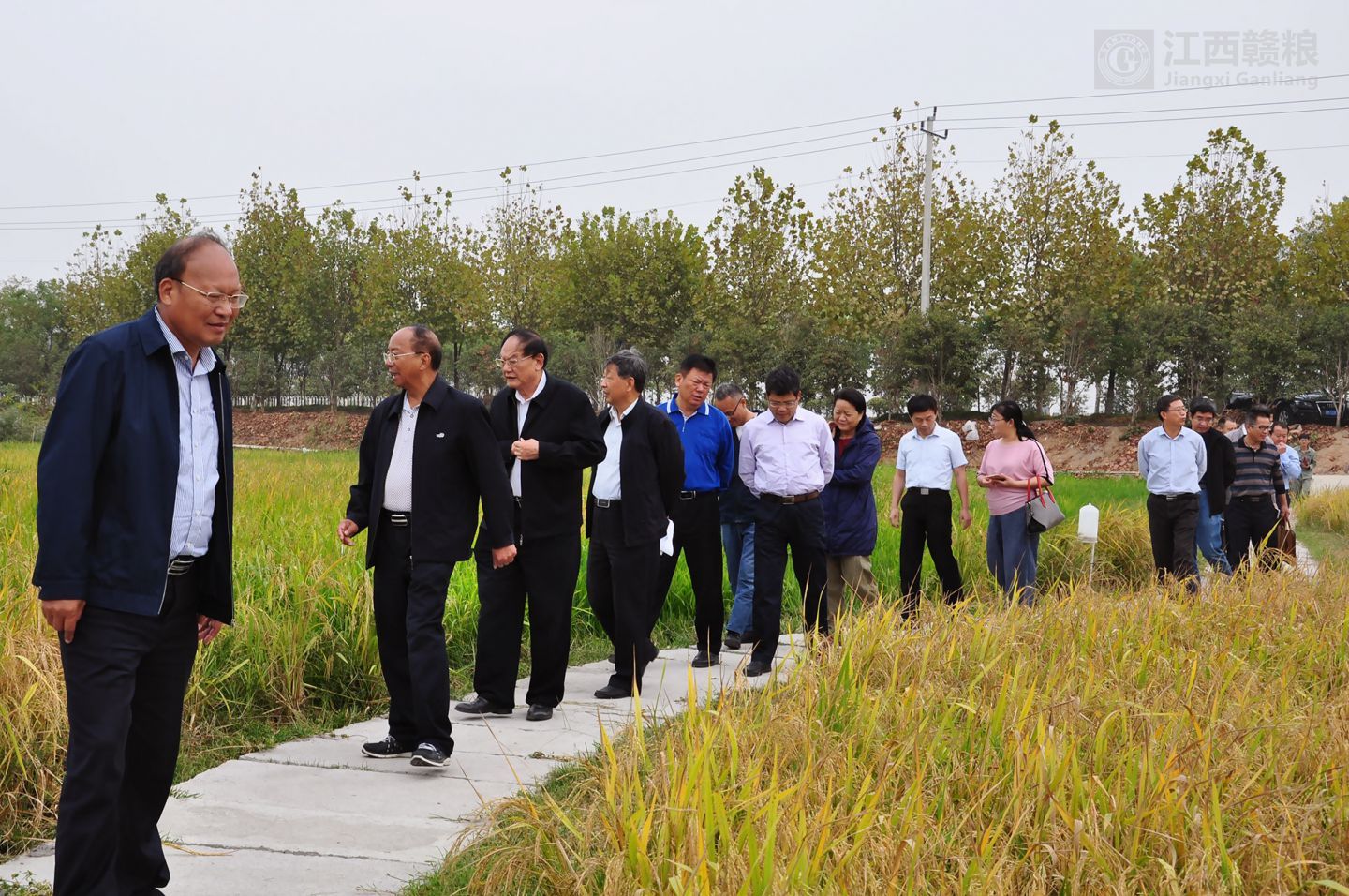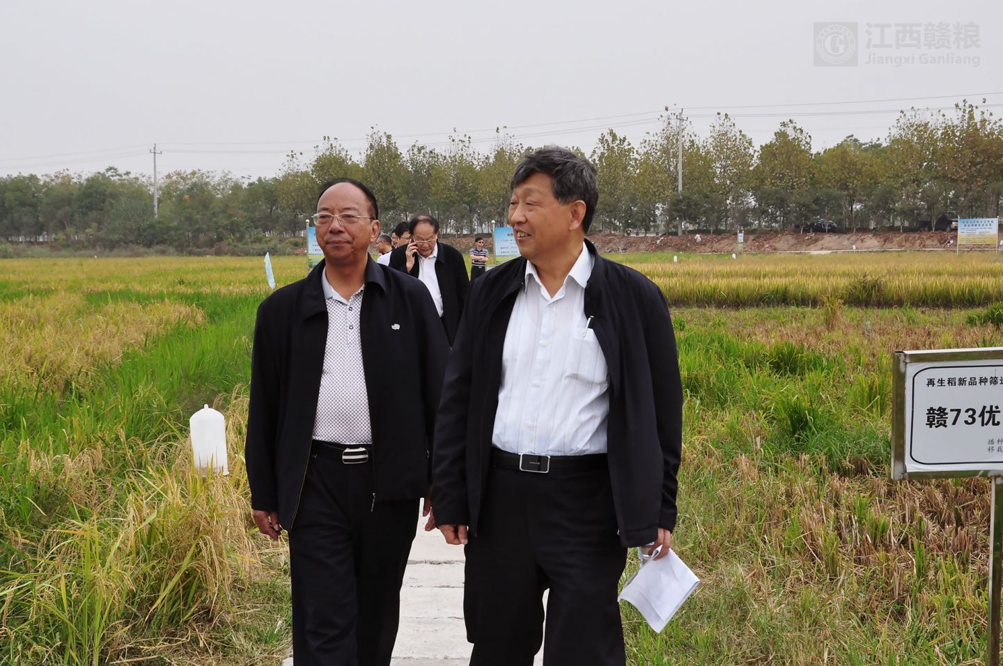 院士、領(lǐng)導(dǎo)、專家先到贛糧公司院士工作站南昌岡上試驗(yàn)基地現(xiàn)場(chǎng)觀摩再生稻的試驗(yàn)示范情況。院士一行步入田間查看了再生稻的生長(zhǎng)情況,對(duì)再生稻示范品種“內(nèi)6優(yōu)7075”再生季長(zhǎng)勢(shì)和結(jié)實(shí)率表示肯定。對(duì)生產(chǎn)試驗(yàn)中存在的不足進(jìn)行實(shí)地指導(dǎo)。針對(duì)因第一季機(jī)械收割造成的嚴(yán)重碾壓影響再生季產(chǎn)量的問題,三位院士表示要進(jìn)行栽培與機(jī)械聯(lián)合技術(shù)攻關(guān)。