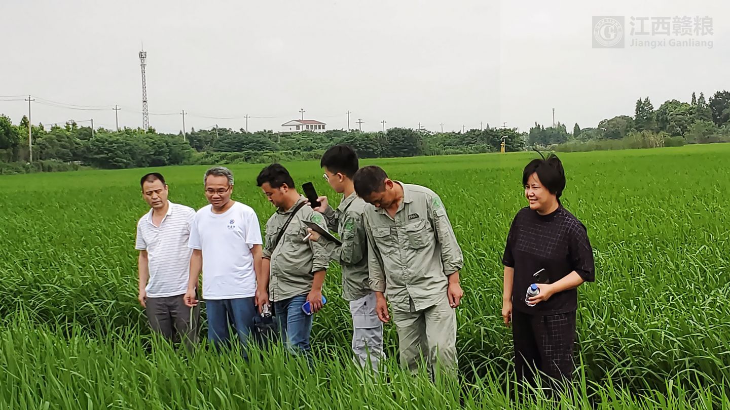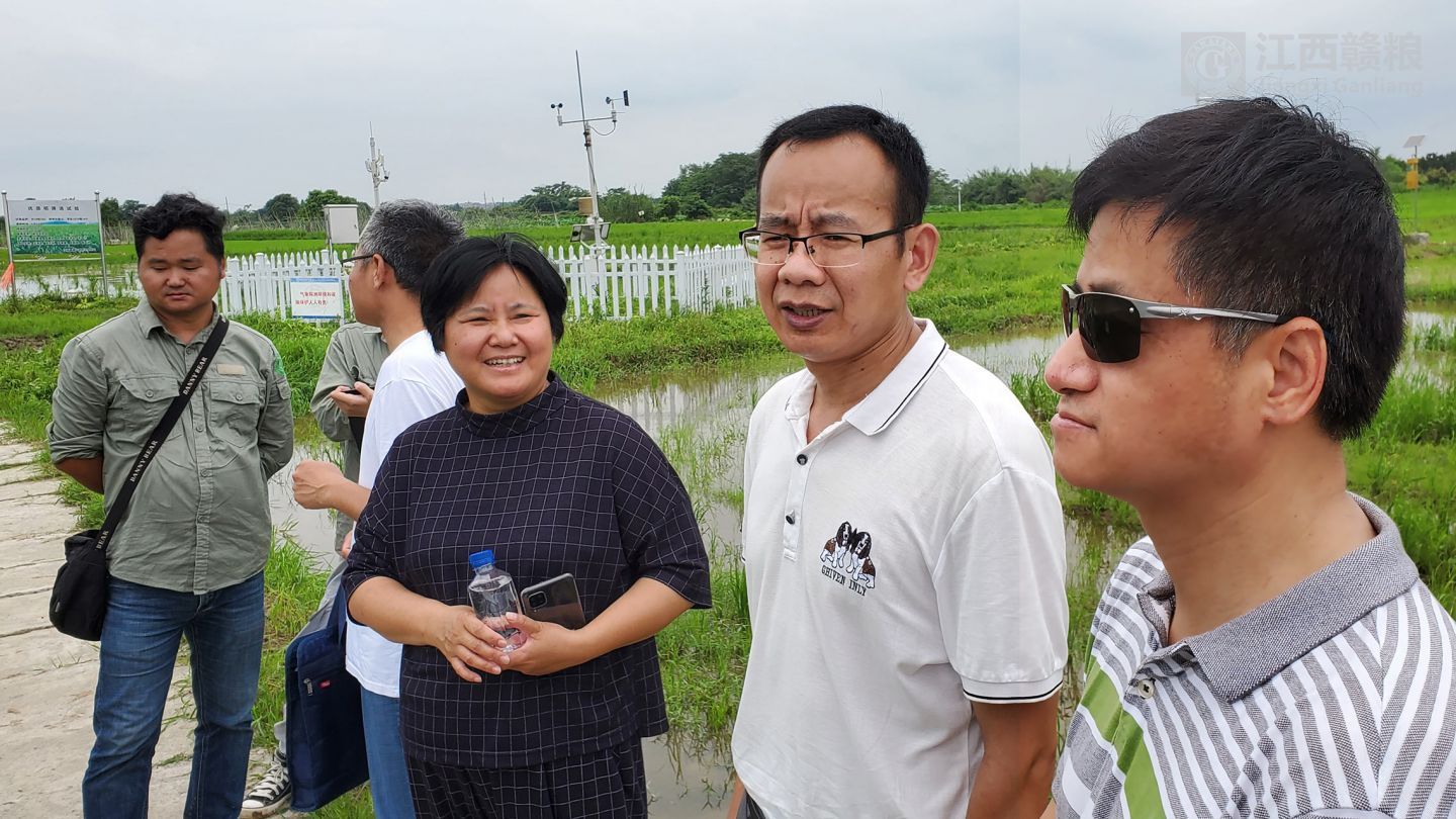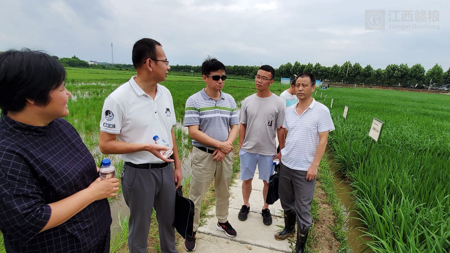 2020年06月10日,南昌縣農(nóng)業(yè)農(nóng)村局農(nóng)技站站長胡友發(fā)、植保站站長劉方義、種子站副站長萬禮根以及產(chǎn)業(yè)科科長萬浪華等專家一行到贛糧公司院士工作站岡上基地進行農(nóng)技指導,專家一行深入田間仔細觀察水稻長勢,對不同品種的水稻提出了不同的管理建議。特別是對基地水稻夏季病蟲害的綜合防治提出了寶貴意見。