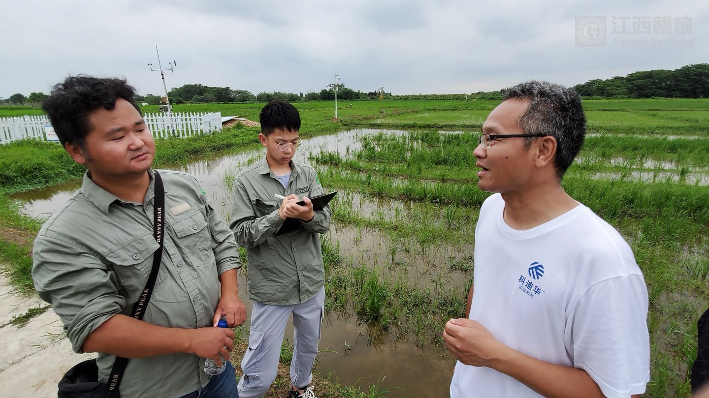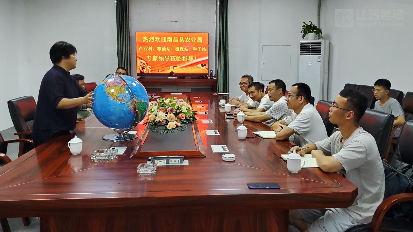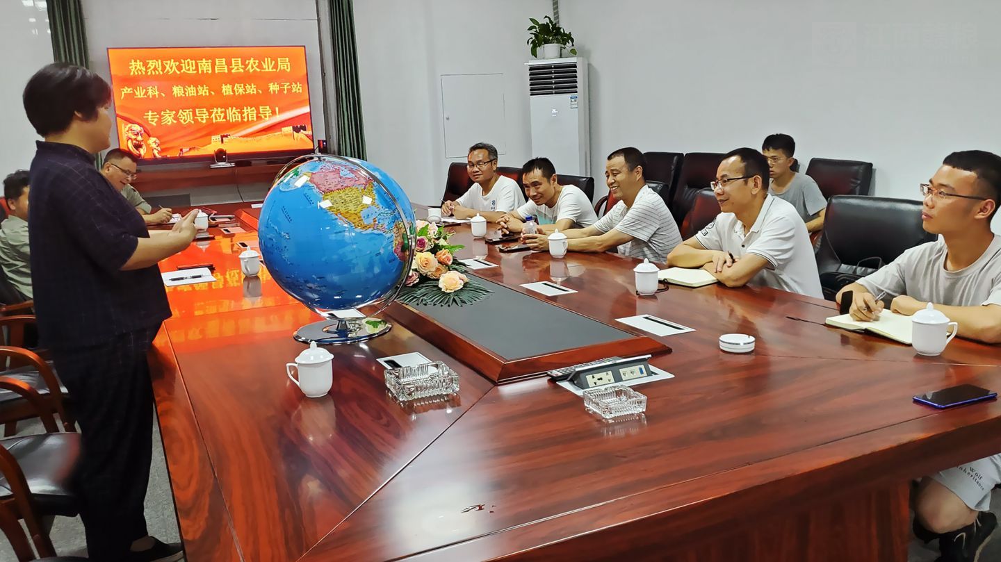 2020年06月10日,南昌縣農(nóng)業(yè)農(nóng)村局農(nóng)技站站長胡友發(fā)、植保站站長劉方義、種子站副站長萬禮根以及產(chǎn)業(yè)科科長萬浪華等專家一行到贛糧公司院士工作站岡上基地進行農(nóng)技指導,專家一行深入田間仔細觀察水稻長勢,對不同品種的水稻提出了不同的管理建議。特別是對基地水稻夏季病蟲害的綜合防治提出了寶貴意見。
