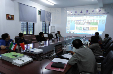 項(xiàng)目組向王岳處長(zhǎng)、蘇建國(guó)參贊匯報(bào)援赤道幾內(nèi)亞示范農(nóng)場(chǎng)項(xiàng)目情況