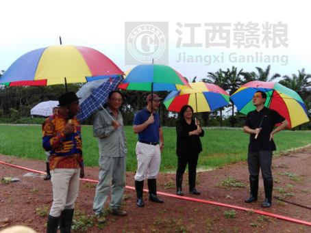 匯報(bào)結(jié)束后,王岳處長(zhǎng)和蘇建國(guó)參贊冒雨參觀了示范農(nóng)場(chǎng)蔬菜、水稻等種植情況。在參觀水稻旱直播田水稻長(zhǎng)勢(shì)后,王岳處長(zhǎng)、蘇建國(guó)參贊詳細(xì)的詢問(wèn)了水稻旱直播的生產(chǎn)過(guò)程、技術(shù)要求、推廣前景,并對(duì)此項(xiàng)技術(shù)推廣前景表示支持,對(duì)示范農(nóng)場(chǎng)的工作給予了肯定和鼓勵(lì)。他們希望農(nóng)場(chǎng)全體員工再接再厲,把援外工作做好做實(shí),合作局、經(jīng)商處將為項(xiàng)目組提供強(qiáng)有力的支持和保障。