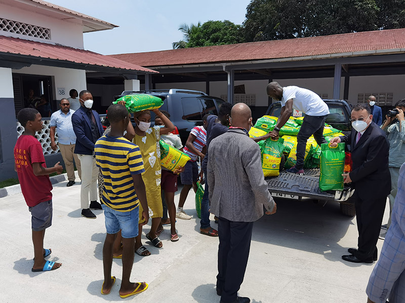 3月10號,中國駐巴塔總領(lǐng)事徐莊聲代表示范農(nóng)場向赤幾農(nóng)業(yè)、畜牧、畜牧與森林部捐贈2000斤大米和1000斤蔬菜等生活物資。赤幾農(nóng)林部埃內(nèi)梅部長、赤幾農(nóng)林部大陸地區(qū)代表奧比昂和項目組代表羅玉生、張慶華等人出席。