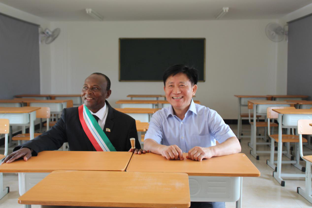 陳國(guó)友大使與涅方市市長(zhǎng)在教室合影